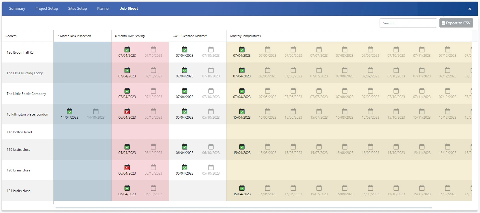 By simply selecting a site or selection of sites, a list of the allocated services will appear, where planners can then enable that service for that site, as well as assigning individual costs and durations. The details of each service entered here will then be used to plot and schedule a job within the planner.