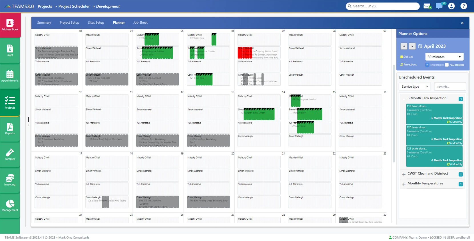 The TEAMS system allows for easy drag-and-drop scheduling of appointments against the assigned technicians, and a unique capacity-planning view ensures that appointments are only booked in the relevant month.